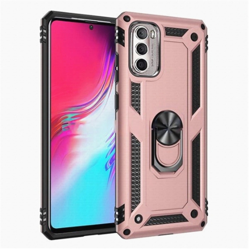 【CSmart】 Anti-Drop Hybrid Magnetic Hard Armor Kickstand Case with Ring Holder for Motorola Moto G Stylus 2022, Rose Gold
