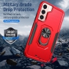 【CSmart】 Shockproof Heavy Duty Magnetic Hard Armor Kickstand Case with Ring Holder for Samsung Galaxy S22 Plus, Red