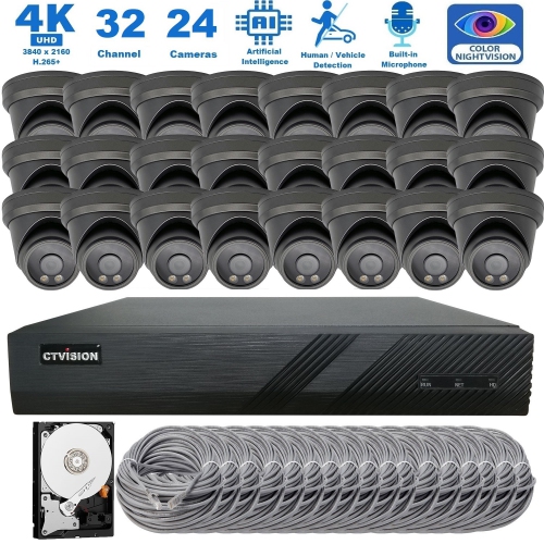 CTVISION Full Color Night Vision 4K Wired Audio Security Camera System, 24 Camera Surveillance Kit Outdoor DIY Audio 8TB HDD Included for Home Business Security Camera System