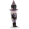 Cupcake nutcracker standing Christmas tabletop figure. The charming nutcracker dons his soldier uniform and drum hat. Adorned with pink glitter and red faux jewels