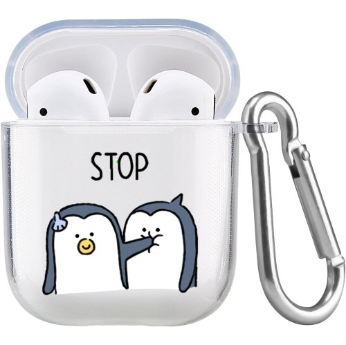 Cute Case for Airpods 1 &2, Transparent Clear Protective Soft TPU Cover, Funny Penguin Pattern Design Animal