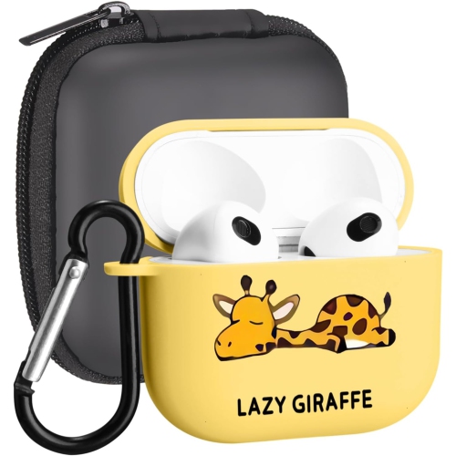Cute Giraffe Case for AirPods 3rd Generation with Keychain, Cartoon Animal Design Protective Soft TPU Cover for Women Girls Cell Phone Batteries