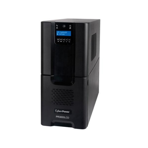 The CyberPower Smart App Sinewave PR3000LCD mini-tower uninterruptible power supply (UPS) with LCD control panel