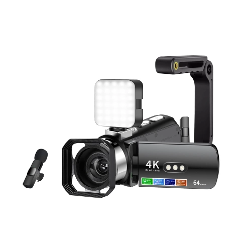 D9 HD Digital Video Camera 4K Wireless Microphone Retro Filter Camera - D9 Black + Fill Light + Wireless Microphone + Lens Hood + Stable Bracket + Card Reader Converter + 32G Card