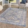 Three diamond-shaped medallions in the center of this design recall Moroccan tribal rugs. The faded indigo-blue color scheme adds a modern touch. With its Bohemian-inspired, distressed look, this denim-inspired rug would be Perfect for a living room.