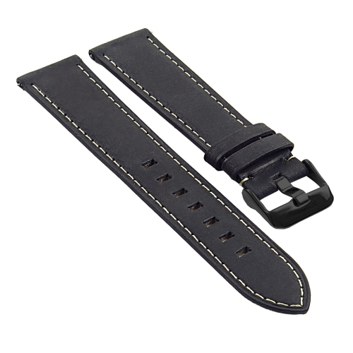 DASSARI 20mm Premium Vintage Distressed Italian Leather Smart Watch Strap Band - Black (w/ Black Buckle)
