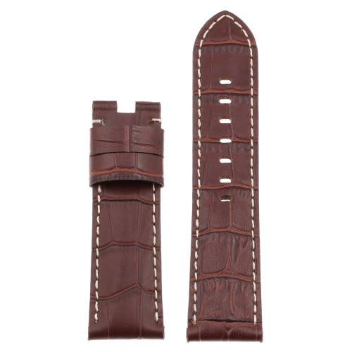 DASSARI Crocodile Embossed Leather Men's Watch Band Strap for Panerai Deployant Deployment Clasp - Extra Long - Brown - 26mm