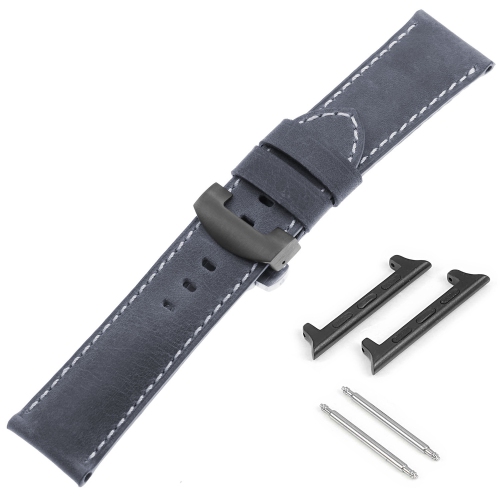DASSARI Vintage Leather Strap w/ Black Deployant Clasp for Apple Watch - 44mm - Oyster Blue
