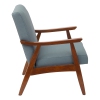 Davis Chair in Klein Sea Blue Fabric with Medium Espresso FrameNothing draws forth an aura of zen and simplicity like the Davis armchair, the perfect garnishing to your home's happy environment. The mid-century contemporary design with a modern makeover is inspired by clean lines and a hint of subtle radiance. Easy-care fabric envelopes a lusciously plush cushion that is supported by a sturdy solid wood frame. It's an eye-catching distinct choice for any living space...