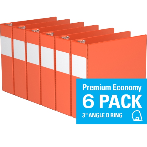Davis Group Premium Economy D Ring Binder, 6 Pack, 3" - Orange