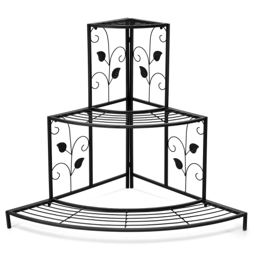 Add charm and functionality to your garden or patio with this 3-tier floral corner metal plant rack. Designed to fit neatly into corners, it provides three sturdy tiers for displaying potted plants, flowers, or decorative items. The floral-inspired metal accents bring a decorative touch, while the open design allows plants to receive ample sunlight and airflow.