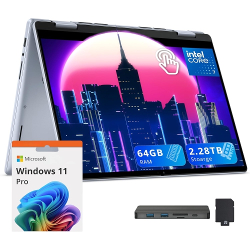 Dell Inspiron 14 2-in-1 Laptop, 14" WUXGA Touch Display, Intel 7-150U,2.28TB Storage(2TB SSD+288GB Docking Station Set), 64GB RAM, Backlit Keyboard, Win 11 Pro, Blue