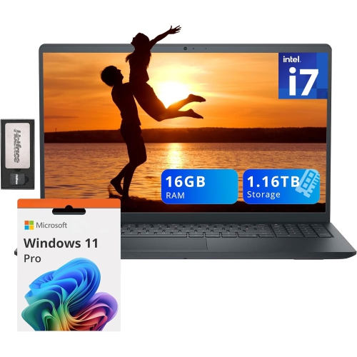 Dell Inspiron 15 3520 15.6" FHD Laptop, Intel i7-1255U,1.16TB Storage (1TB PCIe SSD+160GB Docking Station Set), 16GB RAM, Intel Iris Xe Graphics, Windows 11 Pro, Black