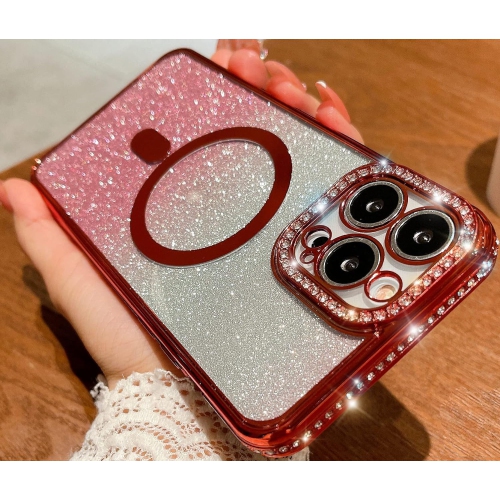 Designed for iPhone 12 Magnetic Glitter Case, Luxury Plating Cute Bling Diamond Inlay Phone Cover Compatible