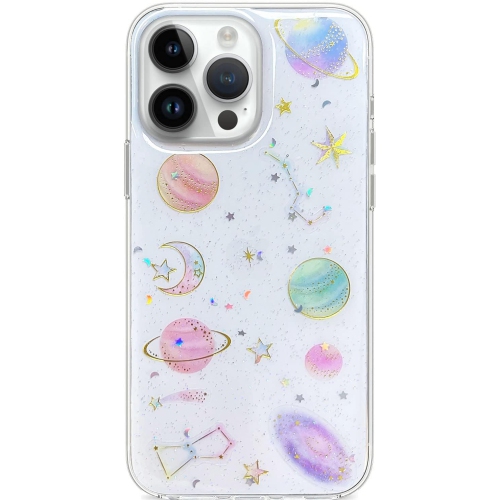 ☪ Elegant Unique Space Moon and Stars Glitter Design This clear with design phone case for iPhone 14 Pro universe cover is made of soft clear silicone and glitter moon and stars. Bling glitter stars moon looks like 3D effect, makes your phone eye-catching, Ultra thin design case, beautiful and elegant. transparent case with universe will be more beautiful to show your Phone original color. Due to hand made, each phone case is unique.☪ Compatible Models pretty glitter aest