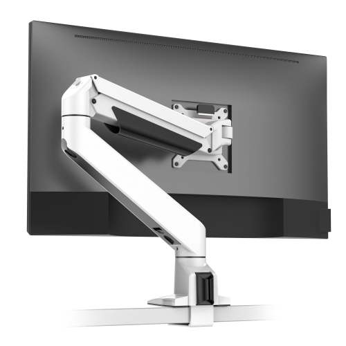 Desky Single Monitor Arm – White, 17–38" Support, Fits up to 22 lb, Clamp or Grommet