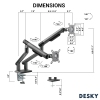 Elevate your workspace with the Desky Slim Dual Monitor Arm in White or Space Grey. Crafted from durable aluminium with a sleek profile, it features spring-assisted movement, 180° swivel, 40° tilt, and visible tension indicators for effortless adjustment. Dual-VESA mounting, integrated cable management, and clamp or grommet install keep your setup streamlined and ergonomic.