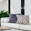 This intricate geometric pillow features a horizontal and vertical arrangement of thin lines that creates an alternating diamond and wave pattern. Small sienna red diamonds stand out like jewels giving this 19 Inch square pillow a modern and sophisticated flair.