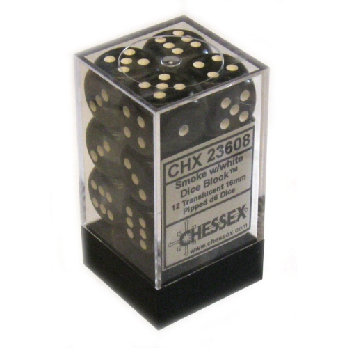 Dice 12D6 Set - Translucent Smoke w/White (23608)