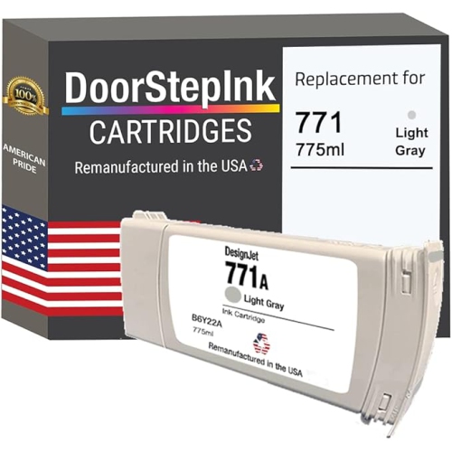 DoorStepInk remanufactured HP 771 775mL light gray ink cartridges are the highest quality wide format replacement ink cartridges on the market. Using only original HP B6Y22A light gray cartridges, we remanufacture each cartridge to the highest quality standards to match OEM ink level, color, and performance guaranteed!