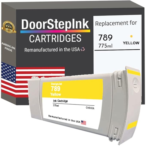 DoorStepInk remanufactured HP 789 775mL yellow ink cartridges are the highest quality wide format replacement ink cartridges on the market. Using only original HP CH618A yellow cartridges, we remanufacture each cartridge to the highest quality standards to match OEM ink level, color, and performance guaranteed!