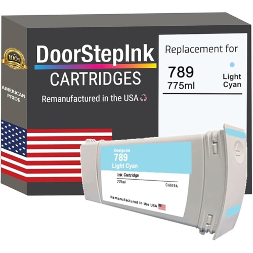 DoorStepInk remanufactured HP 789 775mL light cyan ink cartridges are the highest quality wide format replacement ink cartridges on the market. Using only original HP CH619A light cyan cartridges, we remanufacture each cartridge to the highest quality standards to match OEM ink level, color, and performance guaranteed!