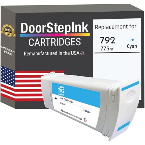 DoorStepInk remanufactured HP 792 775mL cyan ink cartridges are the highest quality wide format replacement ink cartridges on the market. Using only original HP CN706A cyan cartridges, we remanufacture each cartridge to the highest quality standards to match OEM ink level, color, and performance guaranteed!
