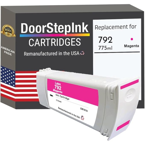 DoorStepInk remanufactured HP 792 775mL magenta ink cartridges are the highest quality wide format replacement ink cartridges on the market. Using only original HP CN707A magenta cartridges, we remanufacture each cartridge to the highest quality standards to match OEM ink level, color, and performance guaranteed!