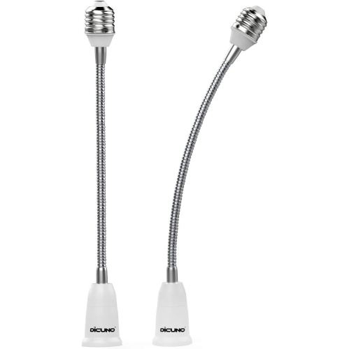 E26 Socket Extender Adapter, E26 to E26 Flexible Extension, All-Directional Adjustable Standard Medium Light Bulb, 10.8inch/27.5cm Socket Converter (2-Pack)
