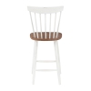 Eagle Ridge Counter Wood Stool with Toffee Finished seat and Cream BaseAdd the charm of a sunny farmhouse kitchen with our classic Eagle Ridge, Windsor style, 26” Counter Bar Stool. Finished in a beautiful white painted finish with natural wood seat, our counter height bar stool will sit pretty around any kitchen counter peninsula or pair nicely with a kitchen island adding a contemporary trendy feel. Traditionally made from solid wood, the 7 spindles join the curved ...