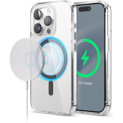 elago Magnetic Hybrid Clear Case Compatible with iPhone 15 Pro Case, Compatible with MagSafe, 6.1 inch, US Military Grade Drop Protection, PC + TPU, Reduced Yellowing (Black)