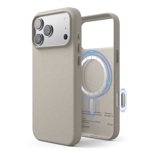 elago Magnetic Leather Case for iPhone 17 Pro Max Case, All MagSafe Accessories, 6.9 inch - Built-in Magnets, Durable Vegan Leather, Shockproof, Water-Resistant (Light Grey)