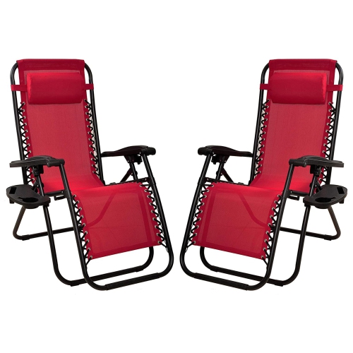 Elevon Adjustable Outdoor Zero Gravity Recliner Lounge Chair, Burgundy, Set of 2