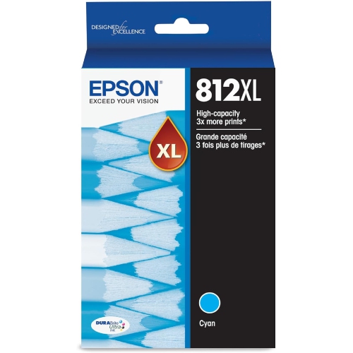 Offered here in cyan, the T812 High Capacity Ink Cartridge with Sensormatic from Epson is compatible with the WorkForce Pro WF-7820 and WorkForce Pro WF-7840 Printers. This cartridge is rated to yield approximately 1100 pages and features DURABrite Ultra instant-dry pigment ink for professional-quality prints.
