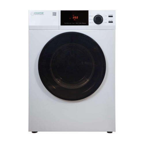The Equator 4 cu.ft. ED 880 Vented Dryer offers precise drying with multiple programs—Normal, Eco, Delicate, Allergen, and more. Features include sensor dry, 3 heat levels, 4 dry levels, delay start, diagnostics, child lock, reversible door, and a Clean Lint Filter reminder. Compact at 33.5" x 23.6" x 25.2", it includes an exhaust kit and requires a 220V power cord.