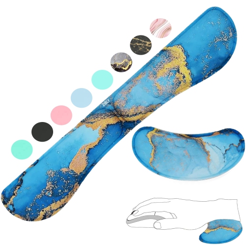 Ergonomic Gel Keyboard Wrist Rest & Mousepad Rests for Computer, Silky Memory Foam for Typing, Laptop Keyboard and Mouse Desk Pads Support Hand and Arm (Combo Blue Marble)