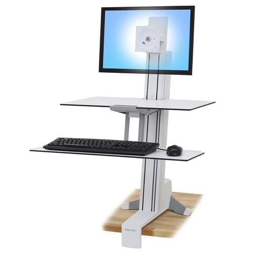Enjoy all the benefits of a height-adjustable sit-stand desk without replacing your existing work desk or workspace. This Ergotron WorkFit desk mount can support a 24" flat panel display and offers the ability to easily switch between sitting or standing while you work. It also features a keyboard stand and sturdy multipurpose work surface.