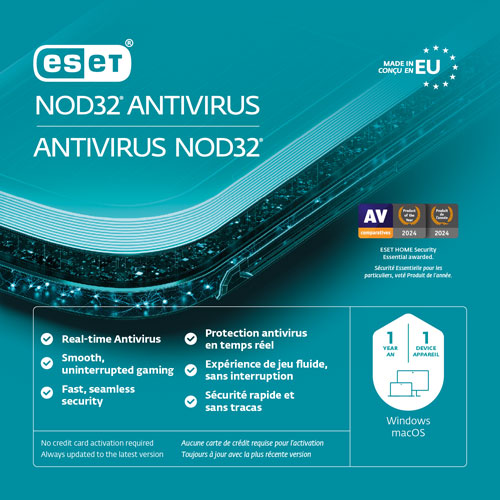 ESET NOD32 antivirus lets you protect your PC or Mac from malware and digital fraud without slowing down your device. Get simple, reliable antivirus protection plus useful monthly security reports and uninterrupted entertainment with Gamer Mode. Secure your private data and money quickly and easily with ESET NOD32 antivirus.