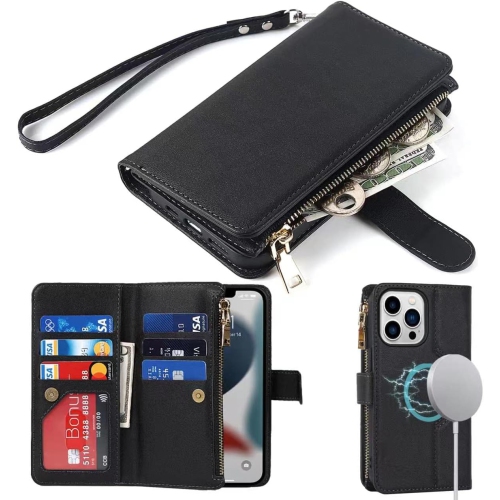 etui iPhone 13 Pro Case Wallet Magsafe Compatible,iPhone 13 Pro Phone case with Card Holder,Magnetic Zipper