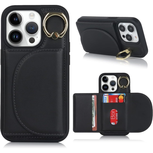 Compatibility :Compatible with iPhone 14 Pro(6.1 inch). ★ Please check the compatible models and screen size before purchasing. If you need a leather case for another model, please click the “View Store” next to the title.Practical Card Holder :3 card slots securely hold your cards without taking your purse outdoor. Pass drop test and durability test, Steady Magnetic buckle keep cards safe and secure, no worries about things slip out.Rotating Ring Kickstand :Built-in 360