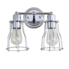 Define your bathroom or vanity space with the handsome industrial look of this 2-light chrome sconce, which can be hung in either direction according to your preference. This classic industrial cage bath light features a hand-worked chrome-plated frame and round wall plate in a polished finish. Edison-inspired bulbs add a vintage touch within the fixture.