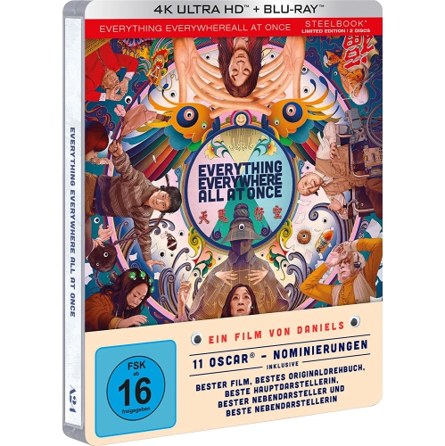 Grappling with the onset of middle age, a Chinese immigrant discovers that she can traverse across time and space. Teaming up with her alternate lives, the unlikely allies realize that they alone possess the power to protect the world from calamity, plunging them into the midst of an outlandish quest. Exclusive German Import Steelbook. English audio option with subtitles. Please note: 4K UHD Disc is Region Free. Blu-ray Disc is Region B