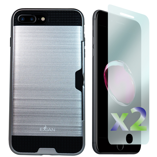 Exian Fitted Hard Shell Case for iPhone 8 Plus;iPhone 7 Plus - Metallic Silver