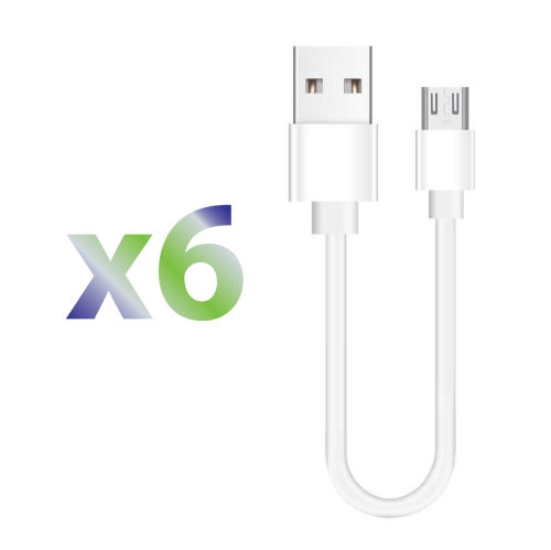 Exian Micro USB Short Cable 0.2M (8.5") White, 6/Pkg