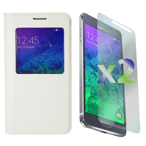 Exian Samsung Galaxy Alpha Screen Protectors X 2 and PU Leather Wallet with Call Access White