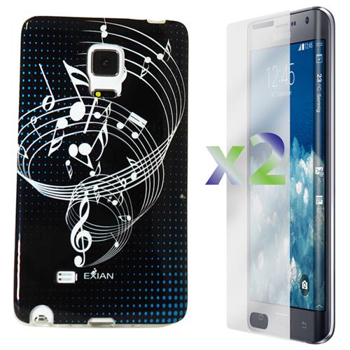 Exian Samsung Galaxy Note Edge Screen Protectors X 2 and TPU Case Exian Design Musical Notes Black