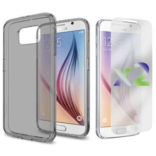 Exian Samsung Galaxy S6 Screen Protector X 2 and TPU Slim Case Transparent Grey