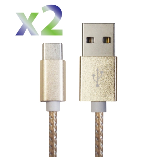 Exian Type C USB Nylon Braided Cable 3M Gold 2/PKG