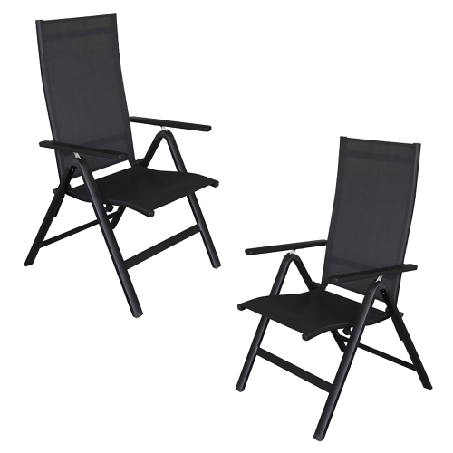 F. Corriveau International - Set of 2 Emma Outdoor Folding and Reclining Chairs, Aluminum Frame, Black