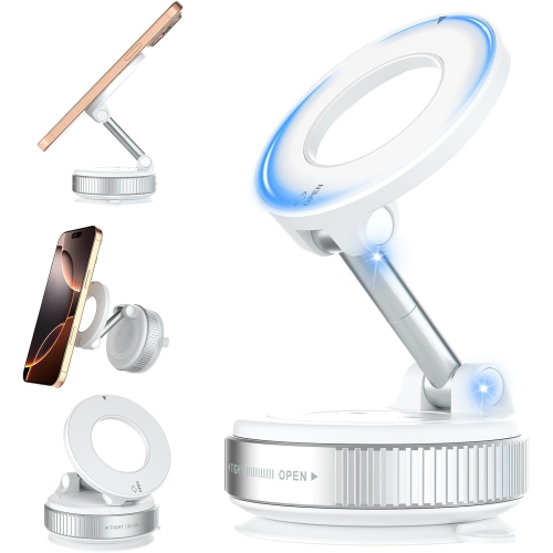 F for 360° Vacuum Magnetic Car Phone Holder, Foldable and Adjustable + Super Stable Suction Cup, Compatible with iPhone and Android, Suitable for Car/Glass/Any Smooth Surface (Whi